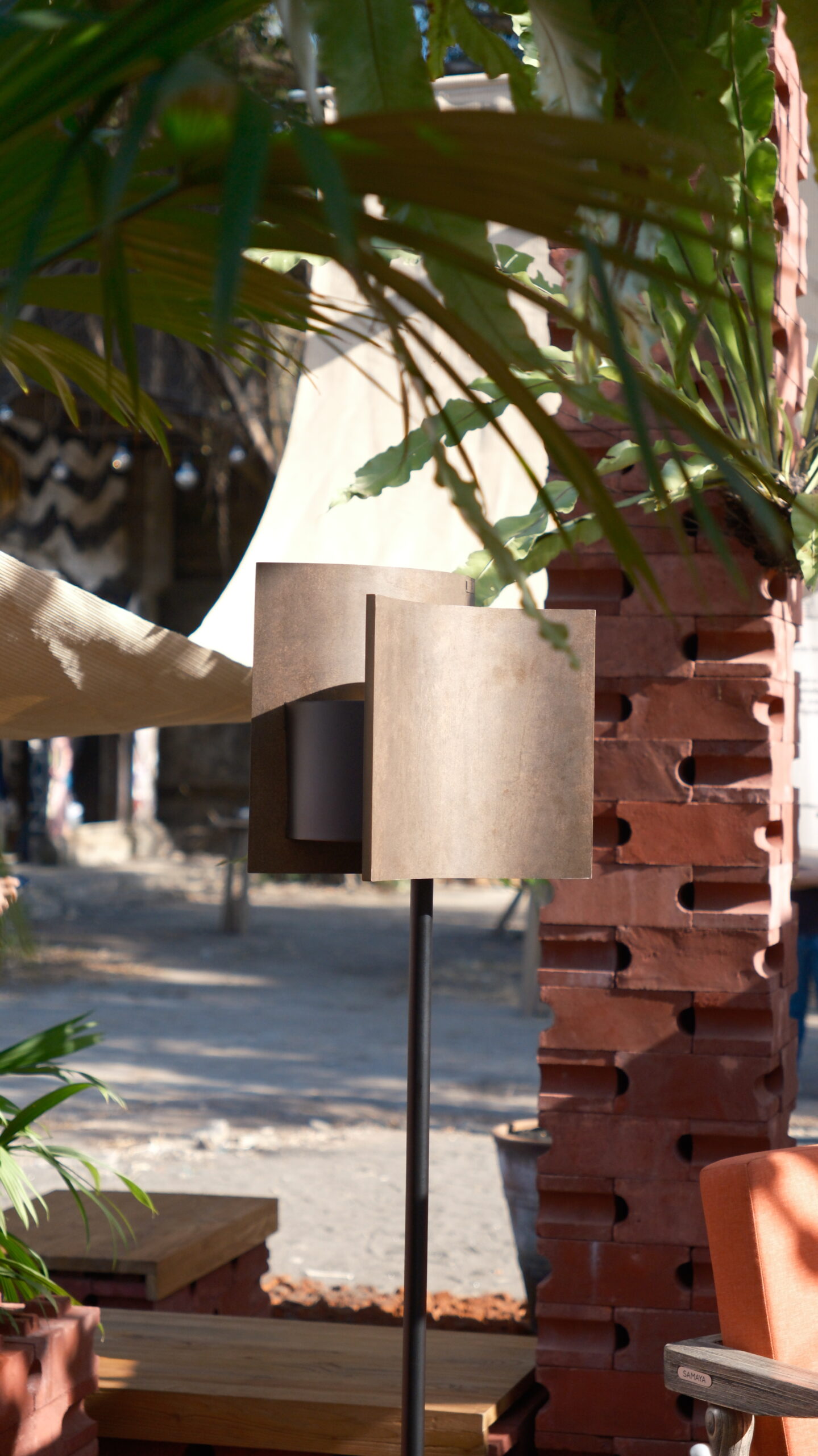 With its curved form, we use Lamitak’s HPL in the Caldo Steel pattern, which gives a highly realistic appearance of rusted metal. However, when viewed up close and touched, it’s revealed to be a laminated surface.